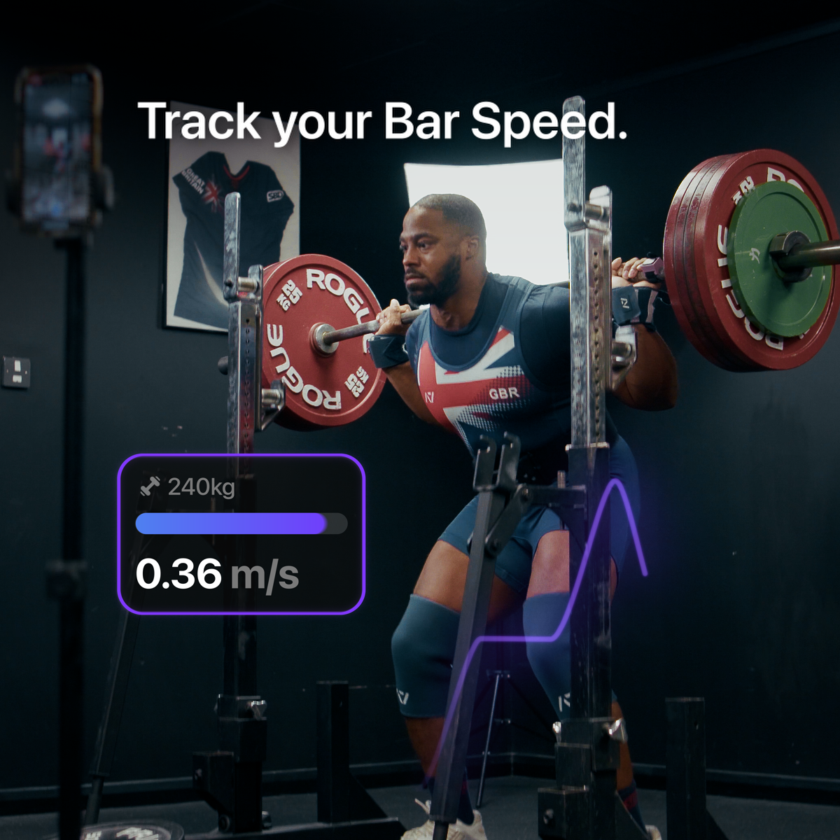 - Tracks your reps and bar-speed